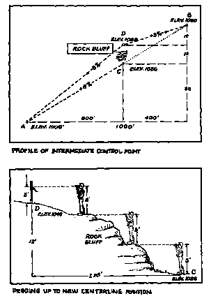 a. From Control Point #l to the Intermediate Control Point (Rock Cliff) gradeline was run at -10% for 1500' , thus, loss in elevation was 150' (15 stations @ -10 %).