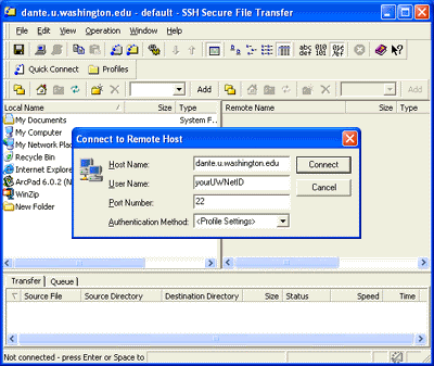 Connecting to UW servers using SSH 3.2 Make sure the Host Name is: dante.u.washington.edu Replace yourUWNetID appropriately |