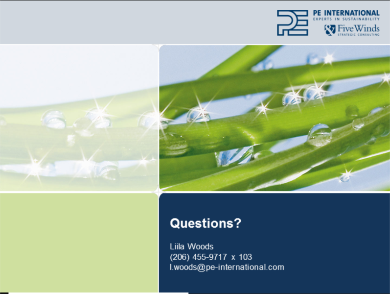 3. Life Cycle Assessment in Practice Liila Woods, PE INTERNATIONAL, Inc |