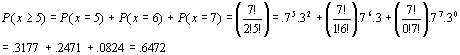 (b) P(at least one accident) = 1 – P(no accidents) = 1 -.1521 =.8479
