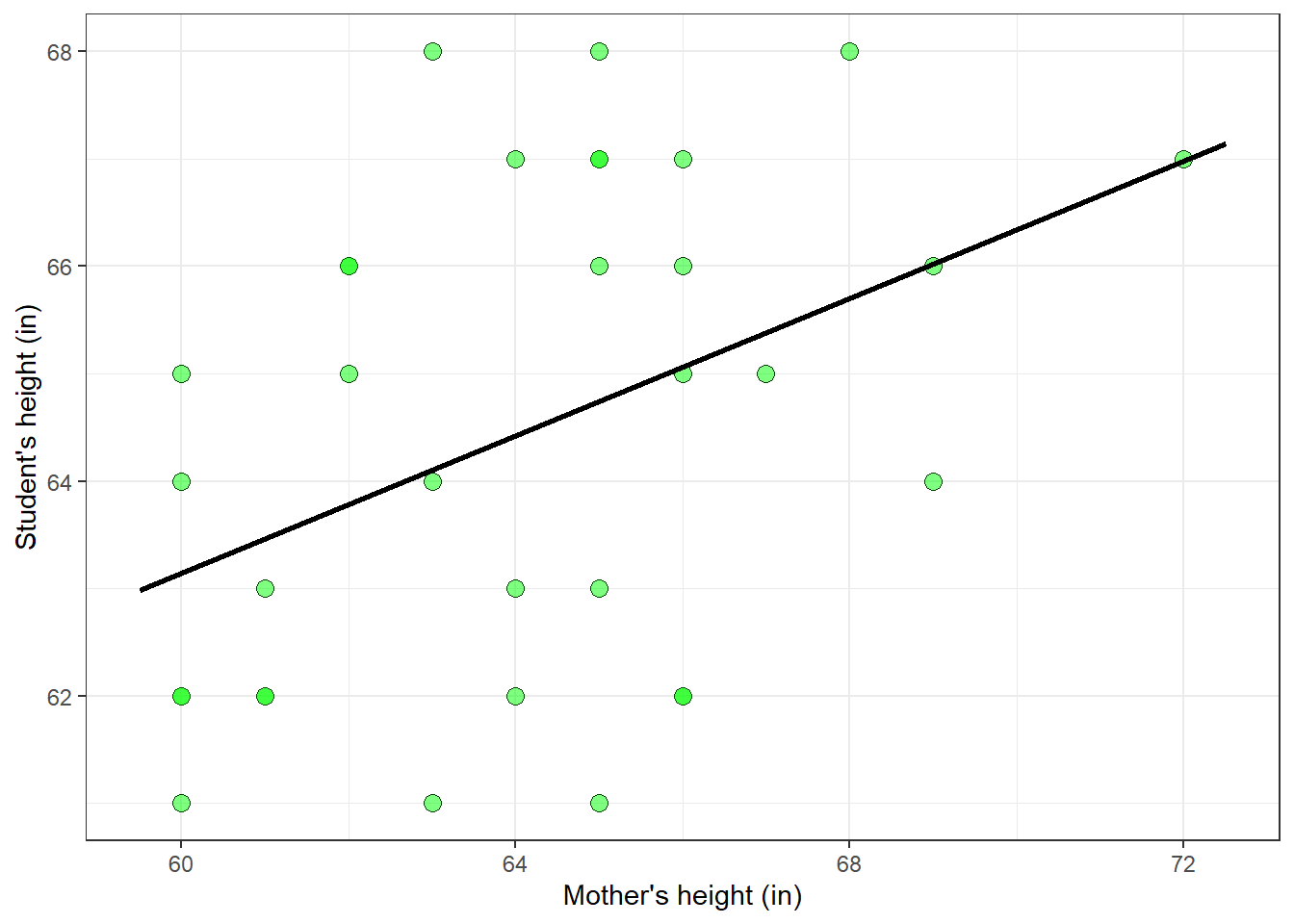 Suppose you want to come up with a model that predicts each student’s height based on their mother’s height. A simple model would be a linear model like this: