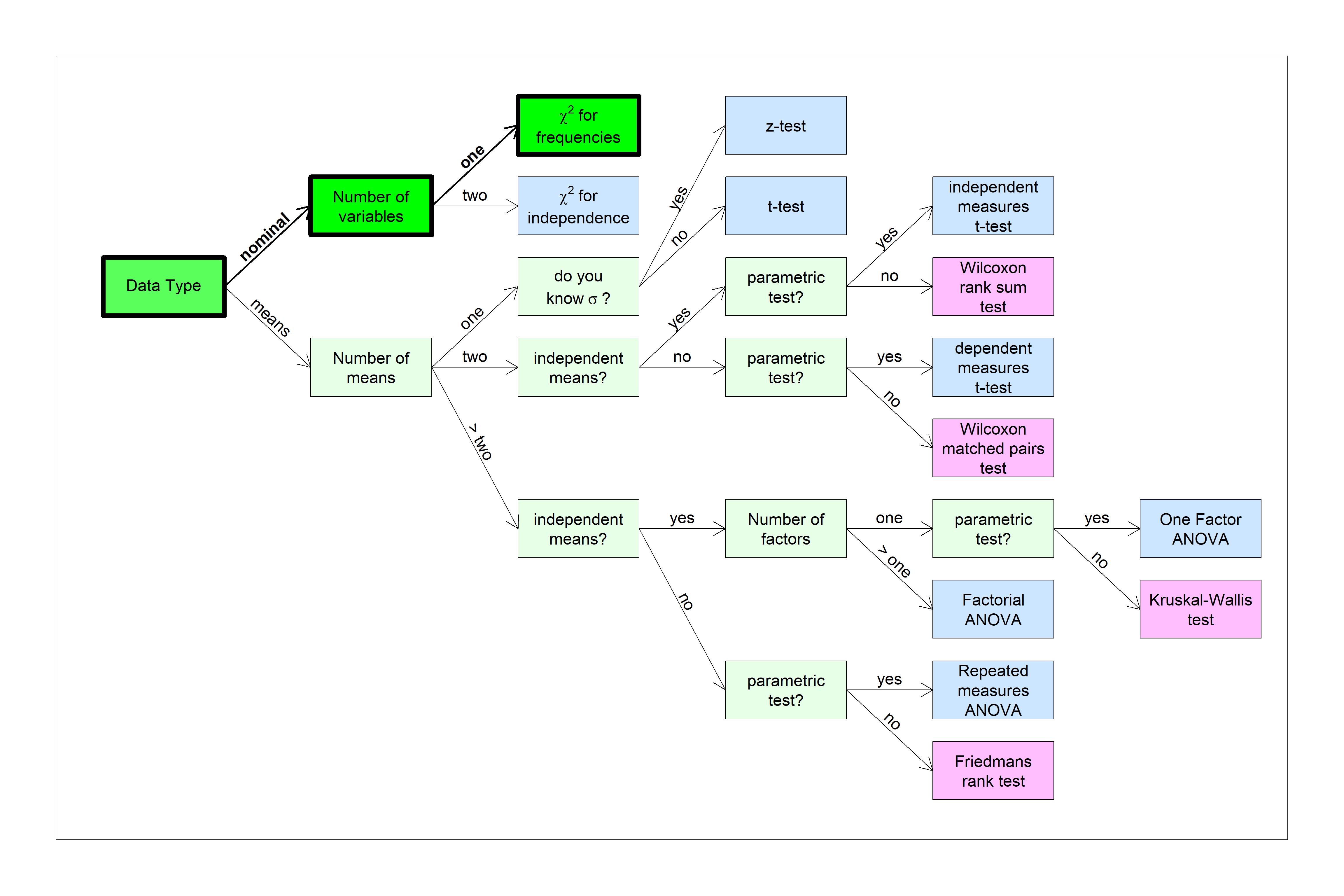 The Chi squared (\(\chi^2\)) test for frequencies a hypothesis test on the frequency of samples that fall into different discrete categories. For example, are the number of left and right-handed people in Psych 315 distributed like you’d expect from the population? Or, is the frequency distribution of birthdays by month for the students in Psych 315 distributed evenly across months? For these tests the dependent measure is a frequency, not a mean.