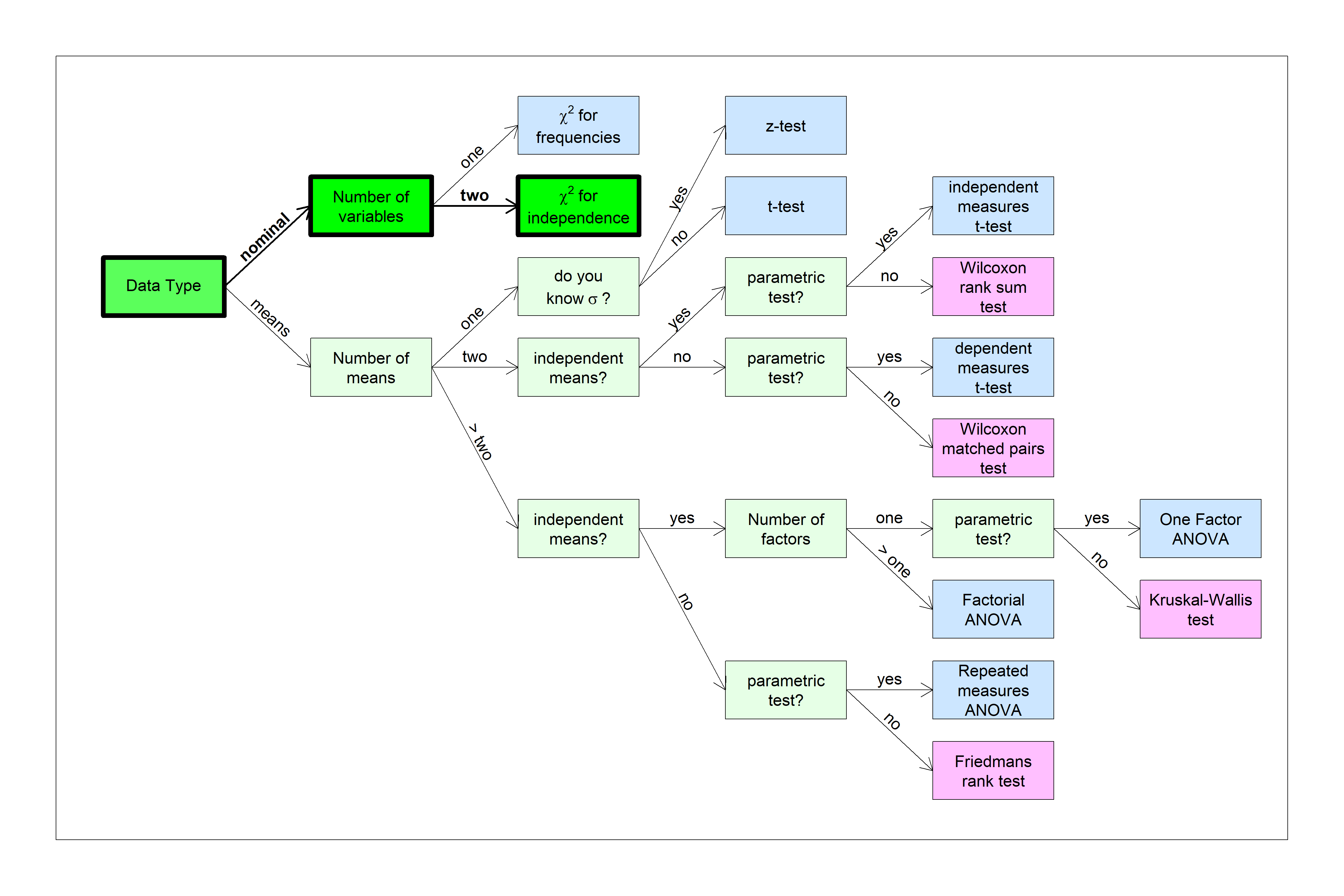 This is the second kind of hypothesis test on frequency data. The test is to see if the frequency for which things fall into two nominal scale factors are independent of each other.
