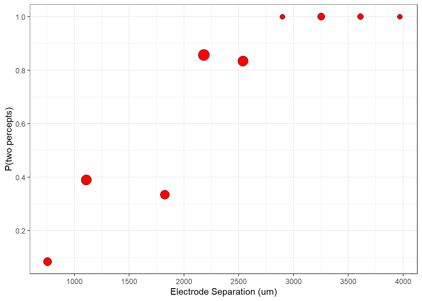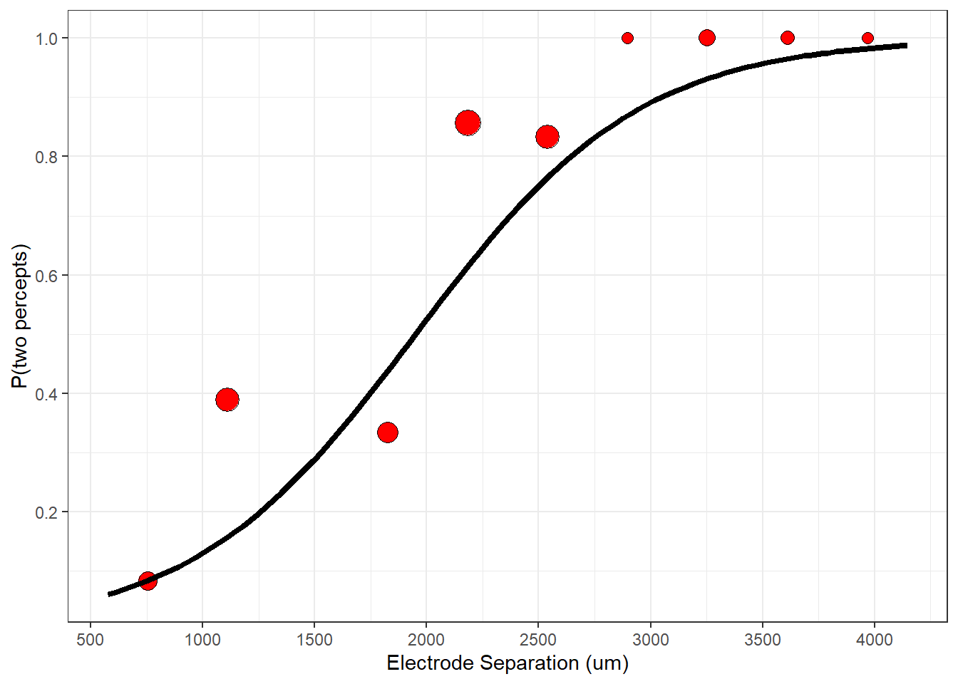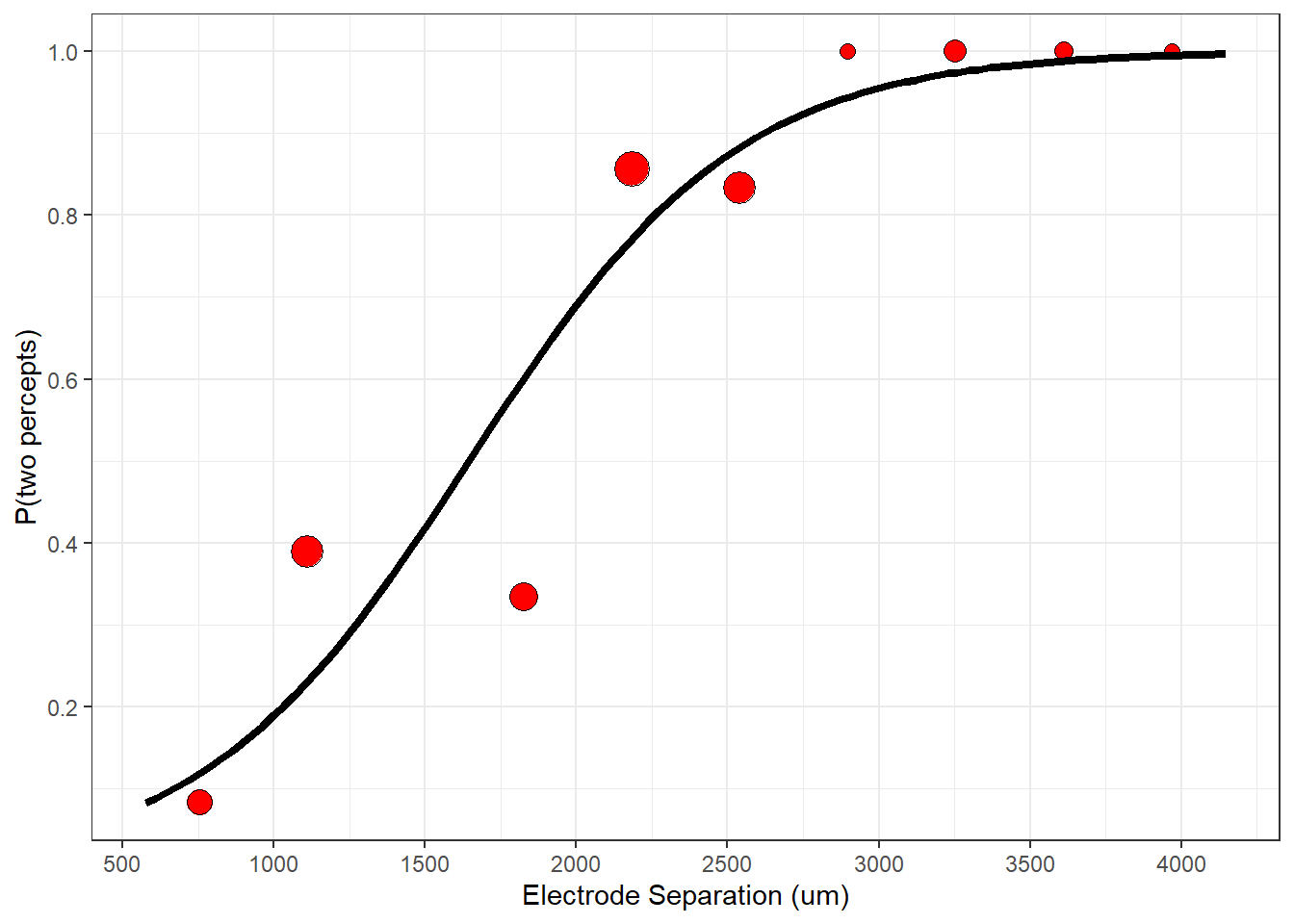 labs(x = 'Electrode Separation (um)',y='P(two percepts)') +